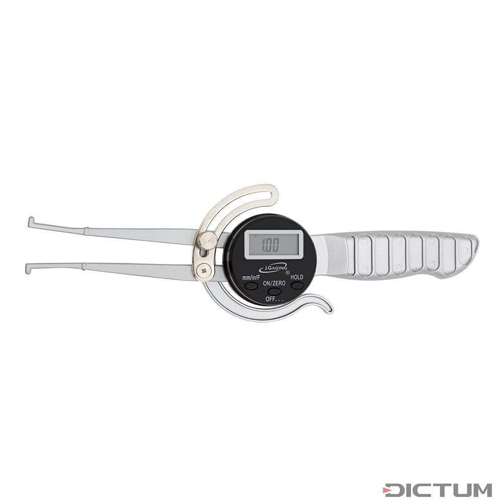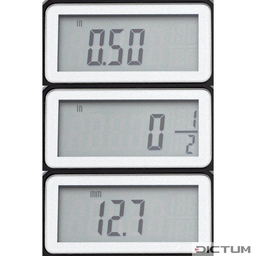 Contrôleur digital d’épaisseur intérieure pour la mesure simple et rapide des espaces intérieurs. Sur le grand écran LCD, les valeurs – en pouces, mètres ou relatives – peuvent être lues de manière claire et rapide. En outre, le contrôleur d’épaisseur intérieure a une fonction HOLD et convient donc parfaitement pour les travaux de tournage. Automate de coupure lorsqu’il n’est pas en usage. Incl. une pile CR 2032 et un étui en plastique.