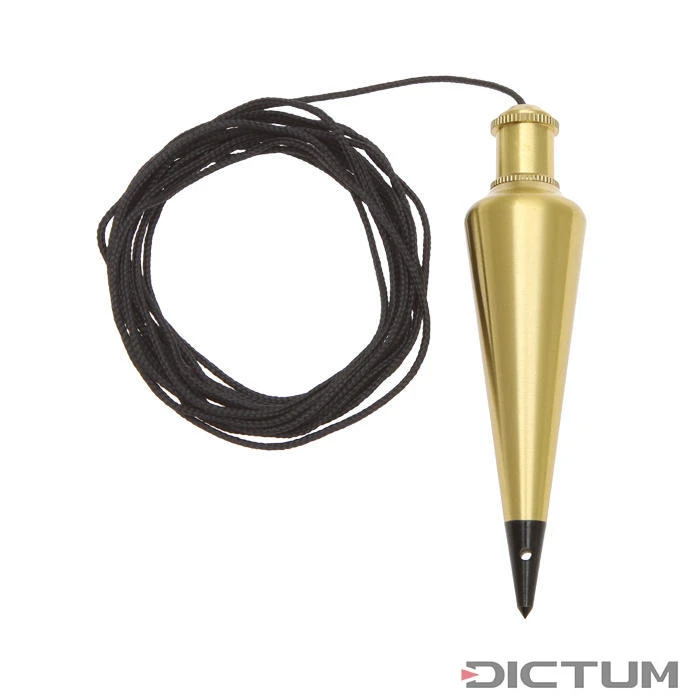 Fil à plomb en laiton laqué avec écrou de cordon et pointe échangeable en acier durci. Le fil tressé de polyamide est résistant à la rupture et aux conditions climatiques, se coupe à chaud pour éviter les franges. Pointe de rechange fournie. Longueur totale 120 mm, longueur du fil 3 m.