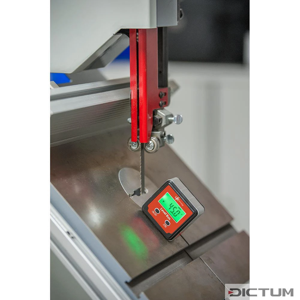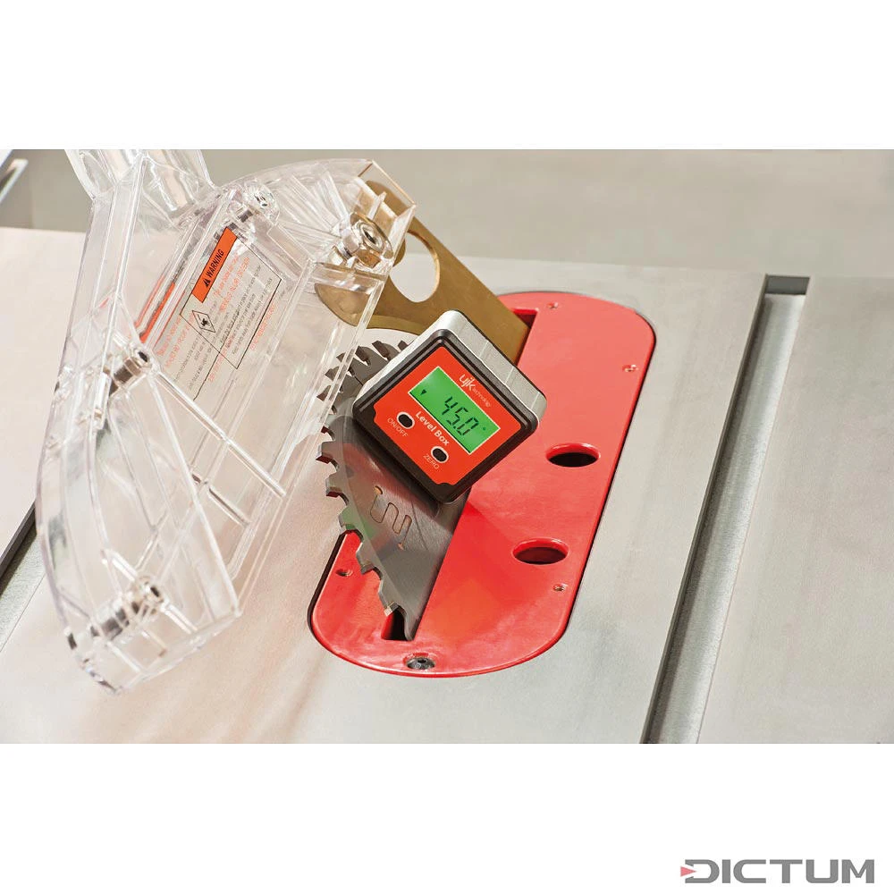 Réglage angulaire simple et rapide pour les lames de scie circulaire, les dispositifs de perçage, les scies à ruban ou les tables d’affûtage. Il suffit de fixer le dessous magnétique aux surfaces ferromagnétiques et de lire l’angle. Haute précision de ±0,1°. Toutes les mesures peuvent être prises sous forme d’angles absolus ou relatifs. Grand écran LCD pour faciliter la lecture. Cadre en aluminium durable, protégé contre les corps étrangers et les projections d’eau (IP44). Utilisation simple avec bouton marche/arrêt et bouton d’étalonnage. Design compact et léger, 60 x 60 x 60 x 25 mm, 70 g. Sacoche de conservation incluse.